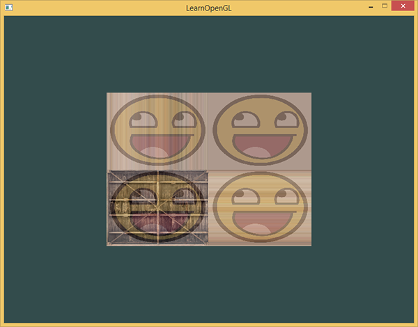 最终输出颜色现在是两个纹理的结合。GLSL内建的0.0,它会返回第一个输入;如果是1.0,会返回第二个输入值。0.2会返回80%的第一个输入颜色和20%的第二个输入颜色,即返回两个纹理的混合色。