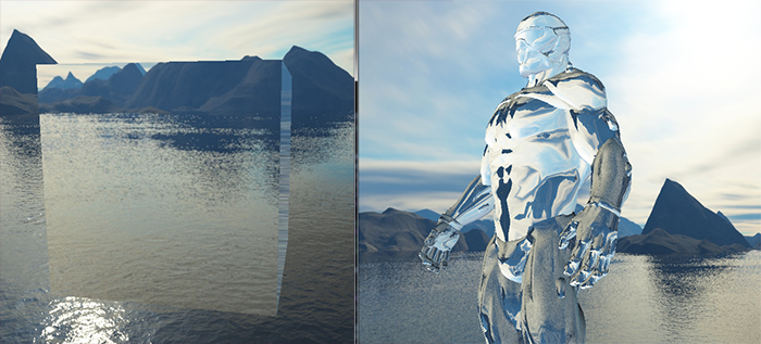 折射是通过斯涅尔定律(Snell’s Law)来描述的,使用环境贴图的话看起来像是这样: