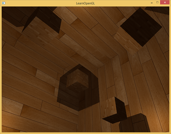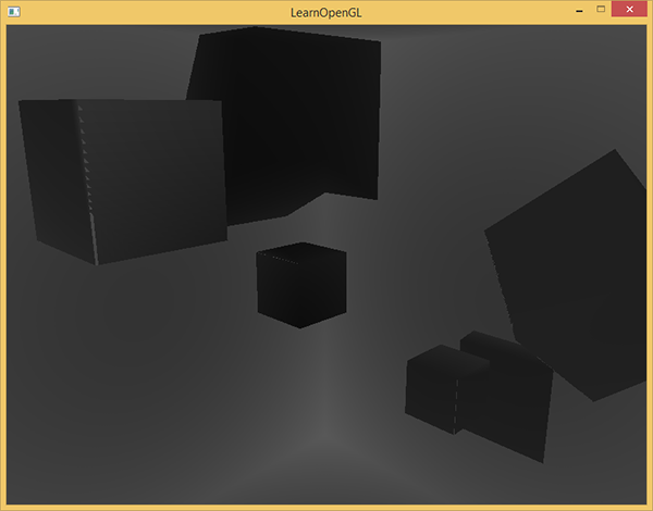 有了这些着色器,我们已经能得到非常好的阴影效果了,这次从一个点光源所有周围方向上都有阴影。有一个位于场景中心的点光源,看起来会像这样: