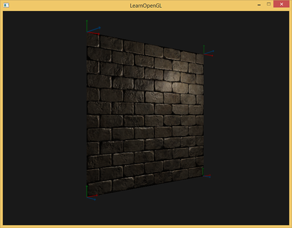 将法线贴图应用到切线空间上,我们会得到混合教程一开始那个例子相似的结果,但这次我们可以将平面朝向各个方向,光照一直都会是正确的: