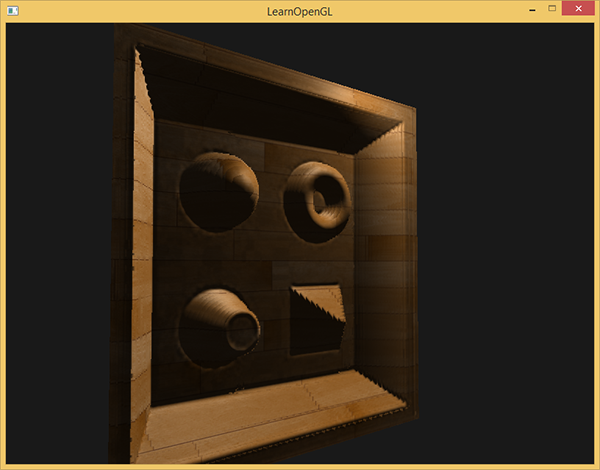 有10个样本砖墙从一个角度看上去就已经很好了,但是当有一个强前面展示的木制表面一样陡峭的表面时,陡峭的视差映射的威力就显示出来了: