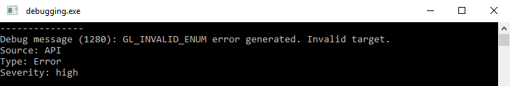 GL_DEBUG_SEVERITY_MEDIUM, -1, "error message here");