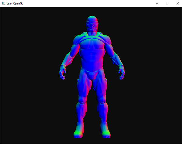 通过输出一个(非颜色)变量到这样子的输出颜色通道中,我们可以快速审查变量是否显示着正确的值。举例来说,如果最后的视觉效果完全是黑色的,则很清楚表明法向量没有正确地传递至着色器中。当它们都显示出来的时候,检查它们(大概)正确与否就会变得非常简单。