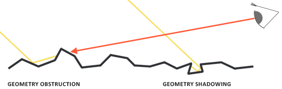 几何函数从统计学上近似的求得了微平面间相互遮蔽的比率,这种相互遮蔽会损耗光线的能量。