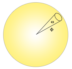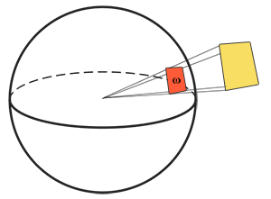 立体角:立体角用表示,它可以为我们描述投射到单位球体上的一个截面的大小或者面积。投射到这个单位球体上的截面的面积就被称为